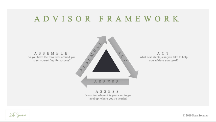 Assembling the right Advisors is the second step of the framework. Consider people you’re already connected to or have a relationship with. Advisors can range from someone you admire from afar to your closet friends. In my experience, Advisor invitations are more quickly accepted by those that you have a closer relationship with.